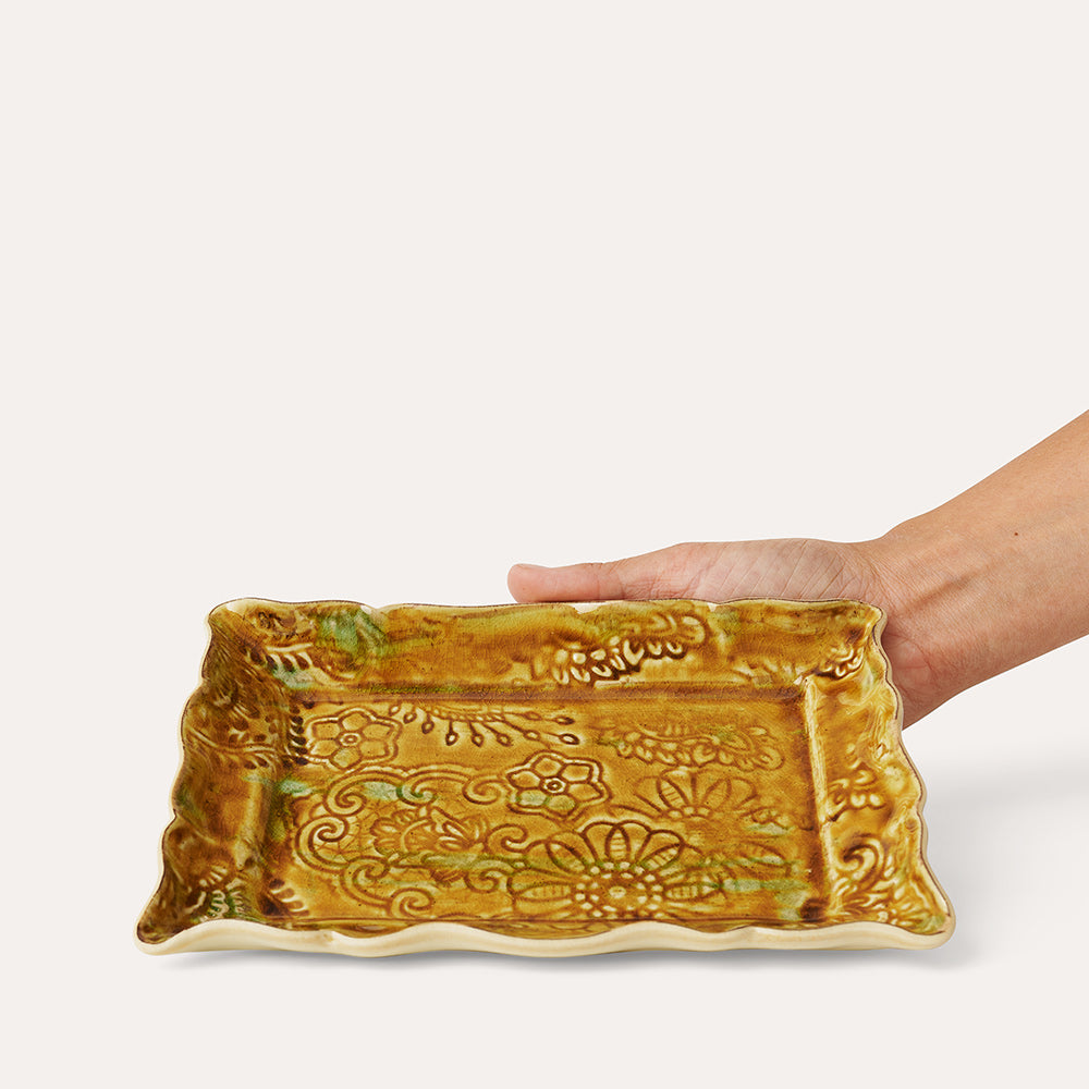 Oppdag eksklusive Sthål appetizer plate Pineapple, et serveringsfat som har blitt en favoritt siden starten av Sthål. Dette fatet tilbyr en fullkommen opplevelse for å nyte deilig mat og er et ideelt valg for mingling, som setter farge på enhver sammenkomst. Den blomstrete glasuren er en effektglasur som med vilje skaper et unikt dryppende utseende, noe som sikrer at ingen to fat er helt like. Som alle produkter i vår Arabesque-kolleksjon, tåler også dette serveringsfatet oppvaskmaskin, og kan brukes i både ovn og mikrobølgeovn. Det lover å pynte opp mange festlige anledninger fremover.