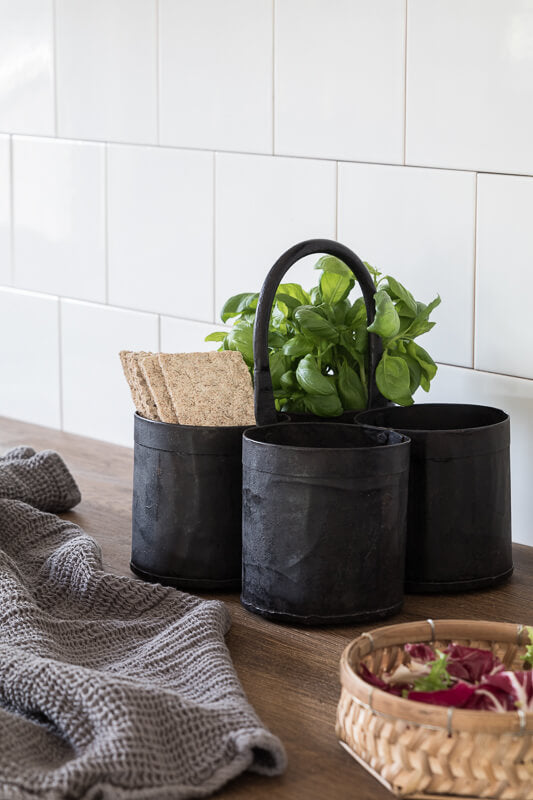Med sitt rustikke utseende og slitesterke materiale tilfører disse pottene en autentisk og varm atmosfære til kjøkkenet ditt. De er enkle å flytte rundt takket være det praktiske håndtaket, noe som gjør dem både dekorative og funksjonelle.