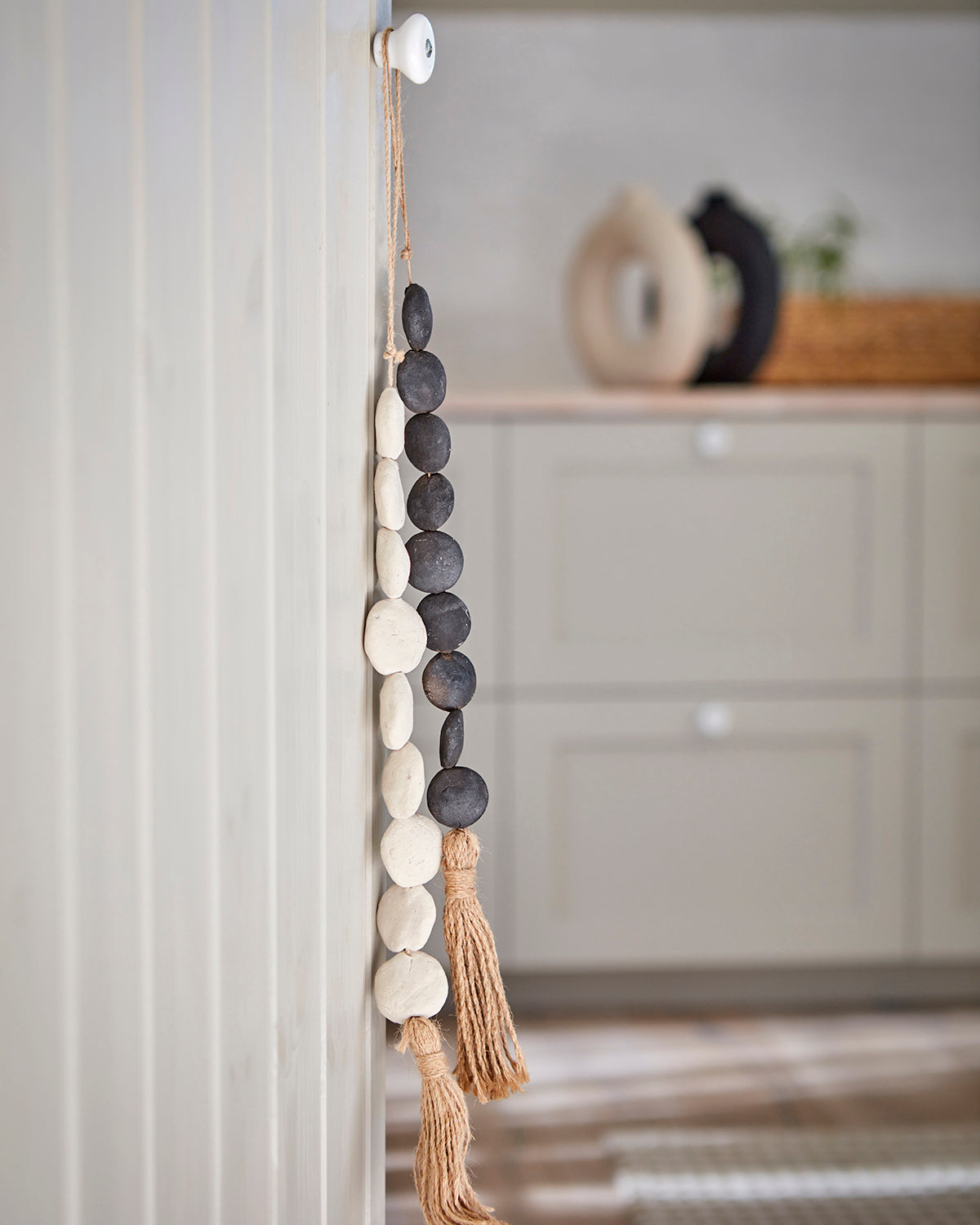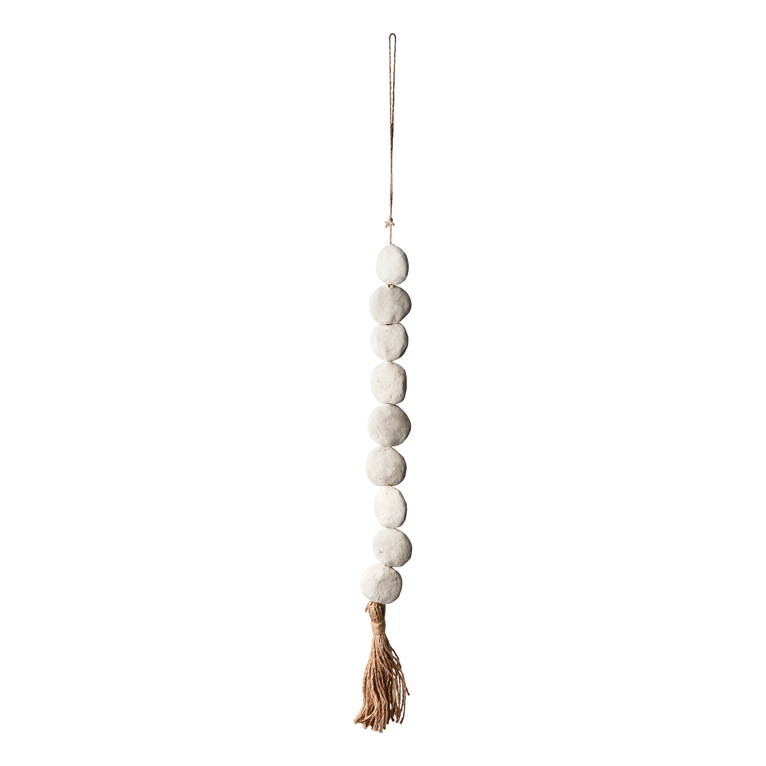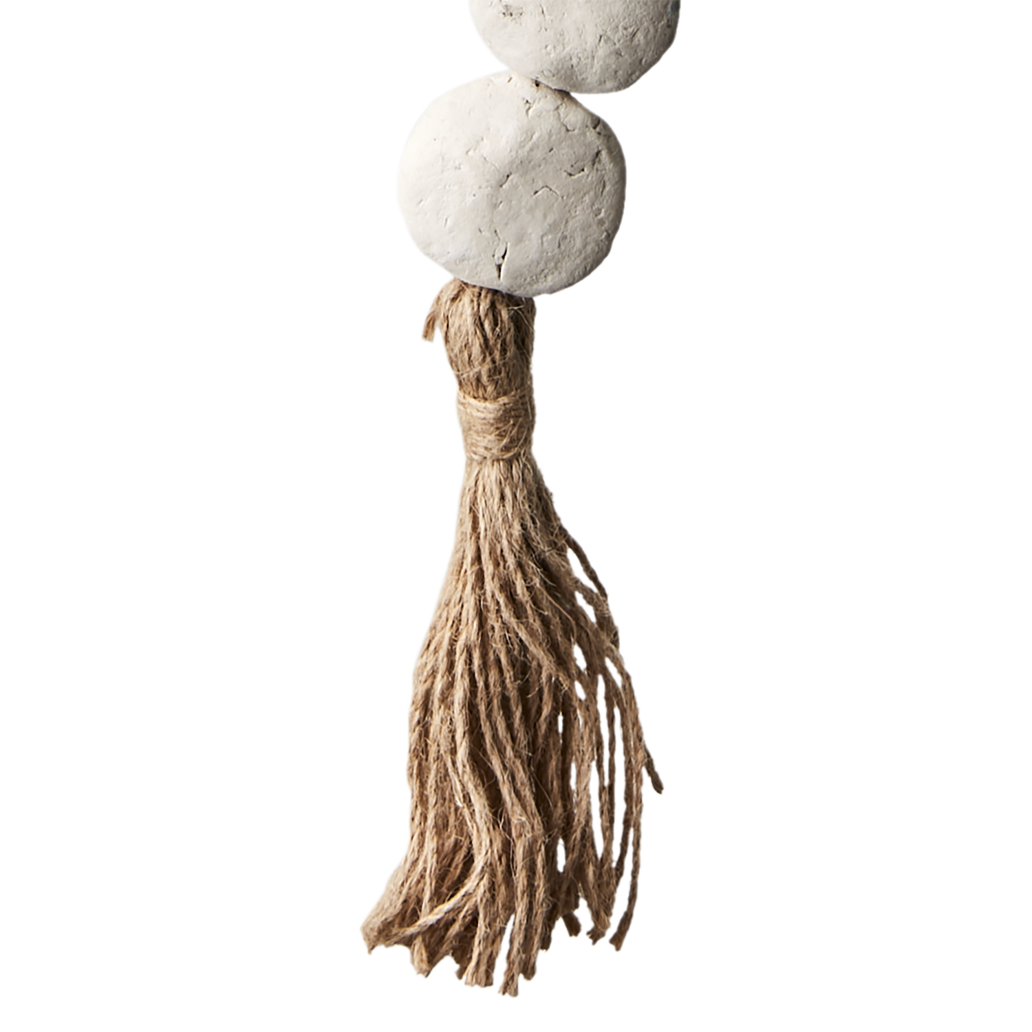 Rustikk Veggdekor i Naturlige materialer. - Ett håndlaget dekor til hjemmet. Den er laget av papmaché og jute, noe som gir den et naturlig og jordnært uttrykk. Med sine vakre elfenbensfargede detaljer og teksturert jute, tilfører denne pynten et stilrent look til både en bohemsk eller skandinavisk stil. Perfekt for å henge opp på veggen eller som en del av en større dekorativ oppstilling.