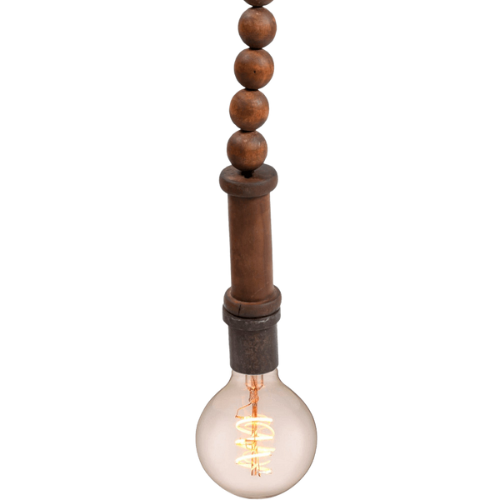 Bruce er en karaktersterk hengelampe laget av hånddreide trekuler i brun finish med naturlig patina. Denne rustikke taklampen bringer varme og tekstur inn i rommet, og skaper en harmonisk balanse mellom funksjon og dekor. Hver lampe er unik, og finishen i brunt gir et lunt og tidløst preg – perfekt for deg som elsker naturlige materialer og interiør med sjel.