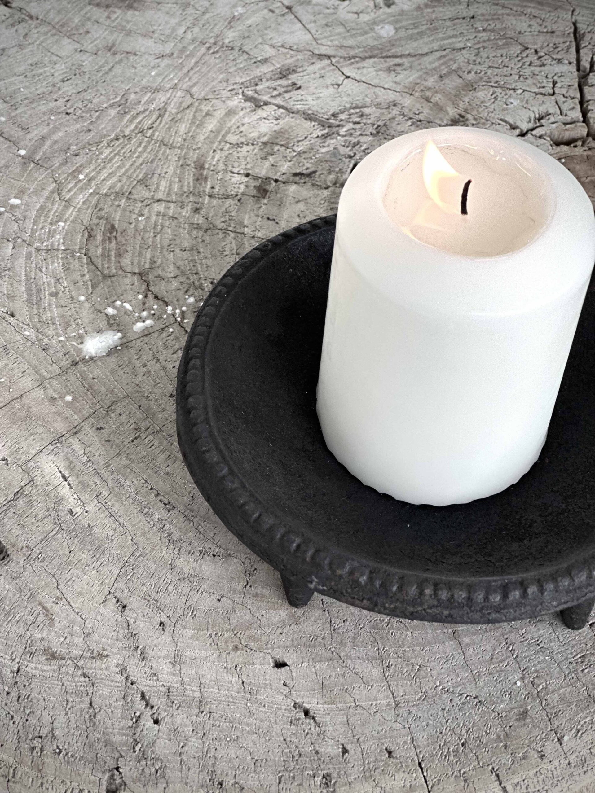 Gjør ditt hjem varmere med vårt Black Antique Iron candle holder plate. Den solide støpejernsdesignen gir en rustikk appell, mens den antikke finishen legger til et snev av tidløs eleganse. Skap en stemning av vintage sjarm med støpejernsstake i antikkstil fra Noori Objects.
