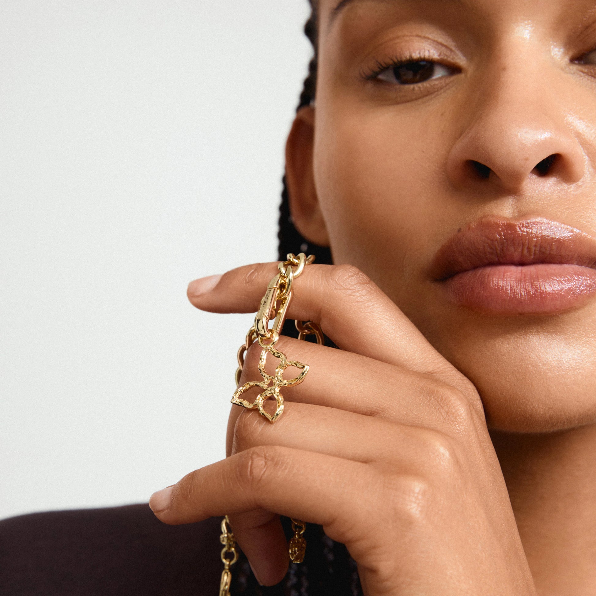 Sommerfuglen symboliserer letthet og fornyelse, og fungerer som et subtilt, men uttrykksfullt element som løfter enhver kjede. Bruk det alene for et rent uttrykk, eller kombiner det med flere CHARM-anheng for å skape din egen personlige stil.