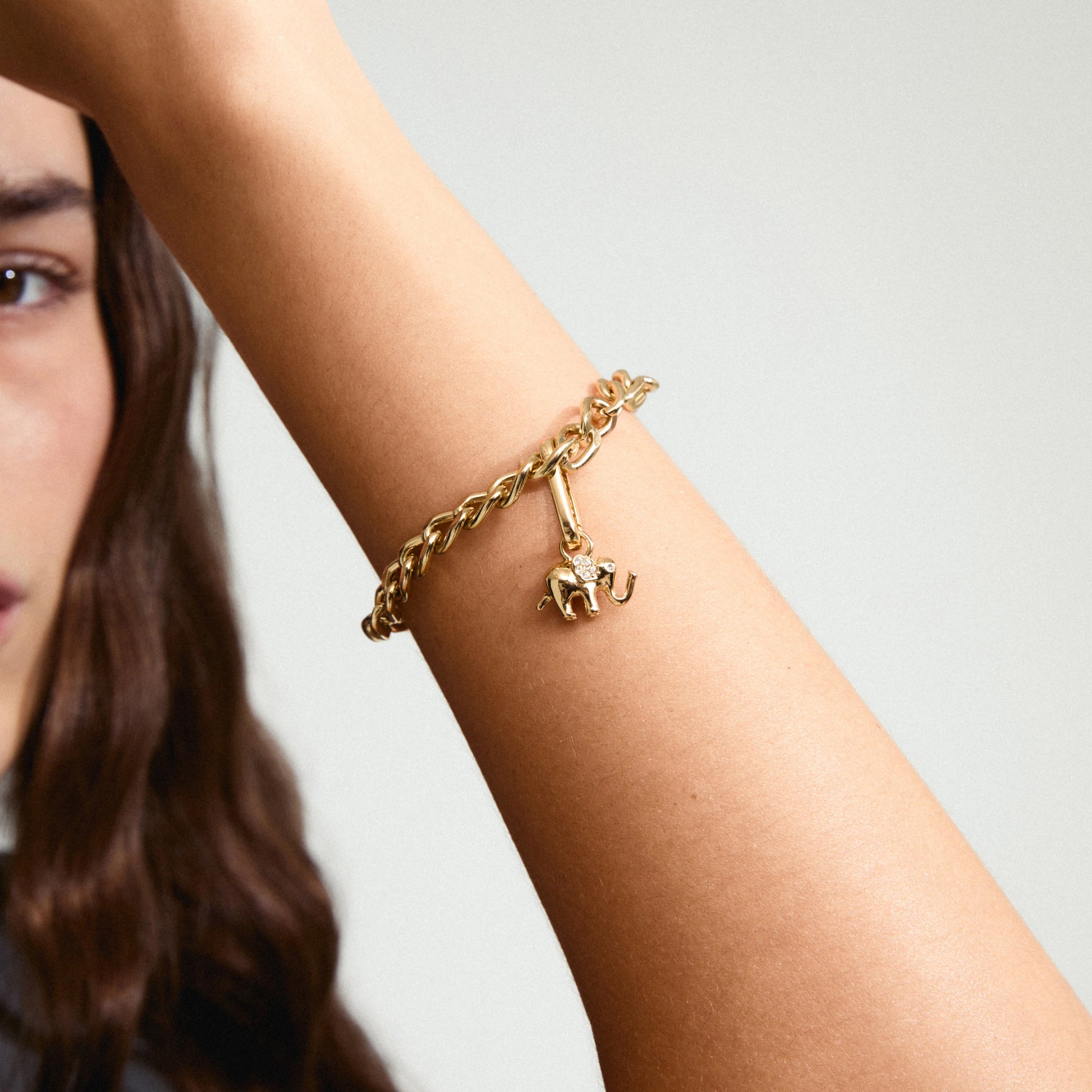 Pilgrim CHARM elefantanheng er et lekent og symbolsk smykke med et uttrykksfullt elefantmotiv som gir et personlig preg til kjeden. Den gullbelagte finishen tilfører varme og glans, og det stilrene designet gjør anheng perfekt som både hverdagsdetalj og festlig accessoir.