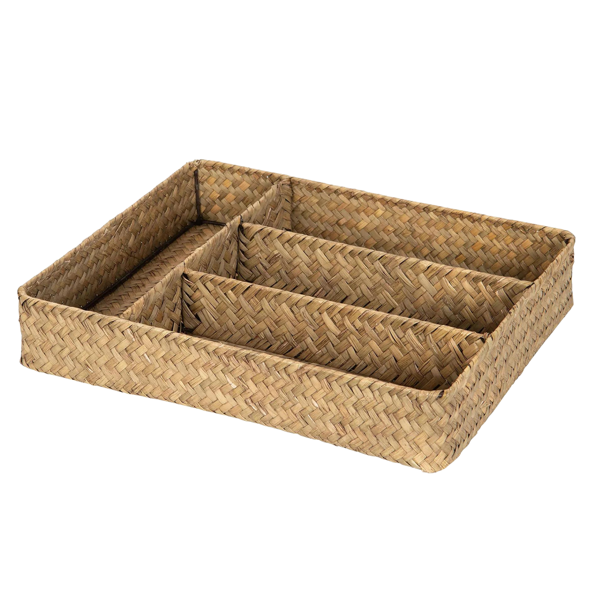 En stilren og funksjonell oppbevaringsboks i naturmateriale – perfekt til både kjøkken og bad. Den flettede strukturen gir et varmt og rolig uttrykk, samtidig som inndelingen gjør det enkelt å holde orden.