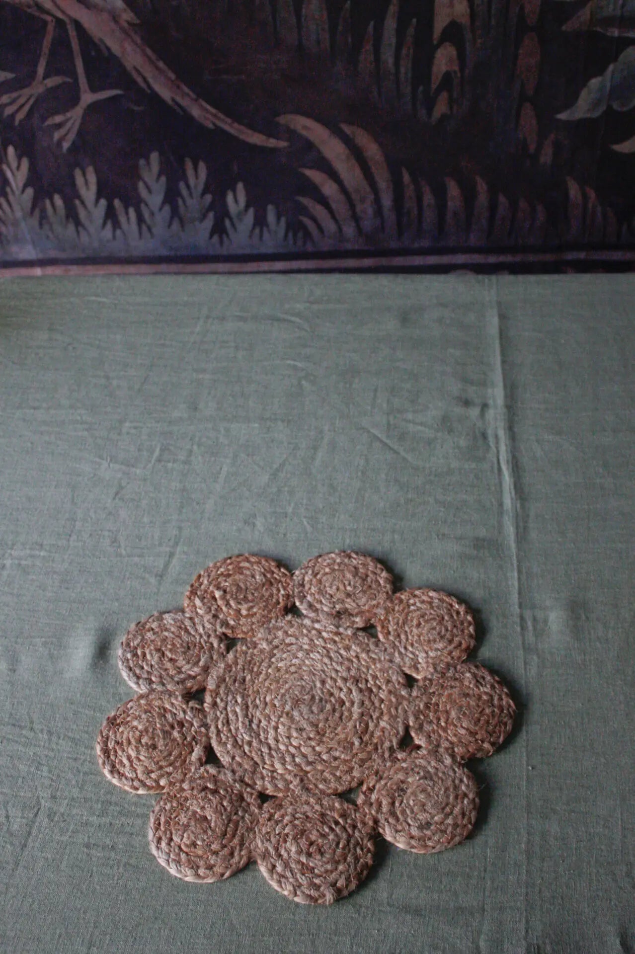 Gi borddekkingen et naturlig løft med Ida Bordbrikke i jute – håndlaget i blomsterform. Denne rustikke bordbrikken kombinerer funksjonalitet med tidløs estetikk, og tilfører varme og tekstur til spiseplassen.