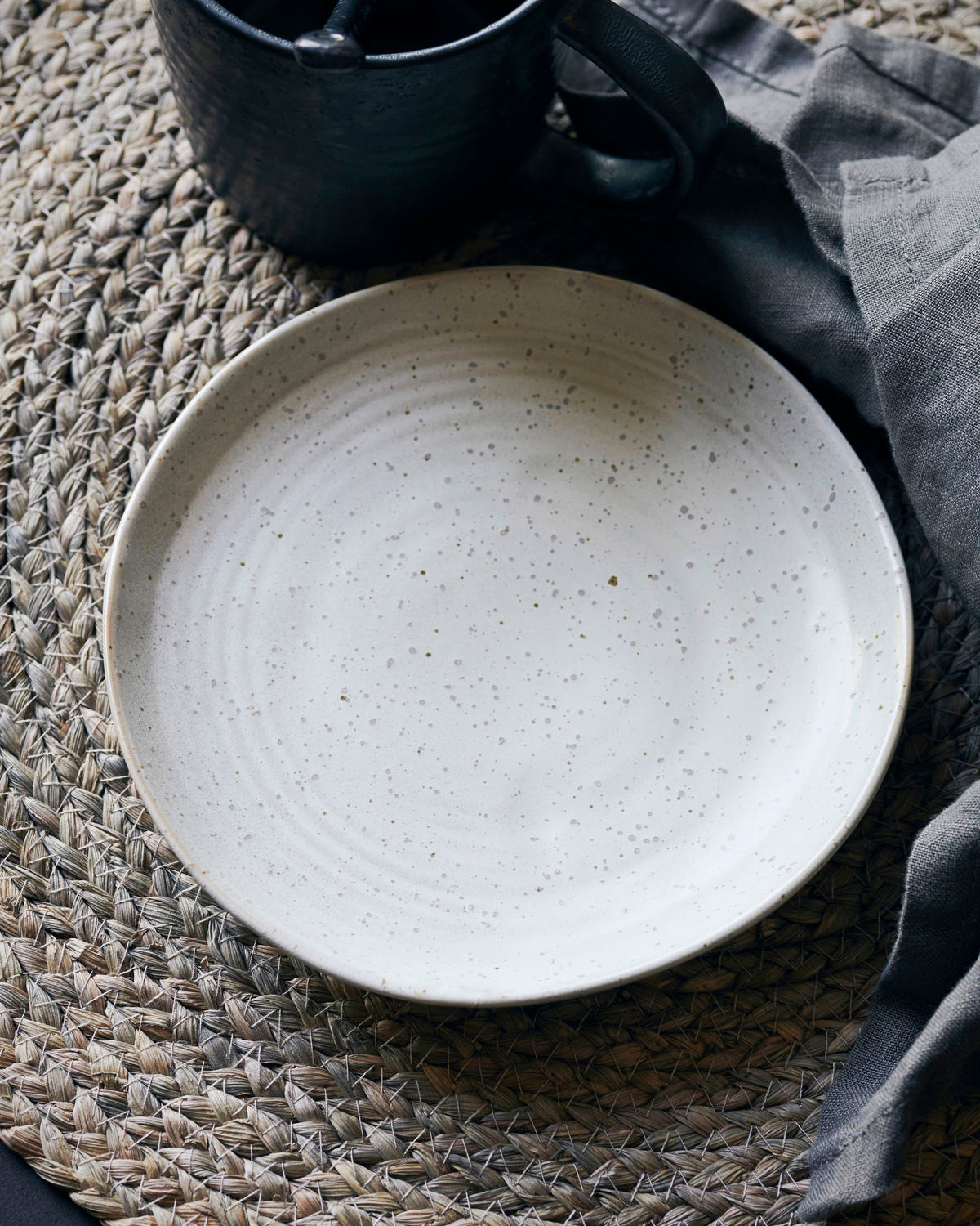 Laget av solid steintøy med håndglasert overflate, der hver tallerken har sitt eget unike uttrykk. Den nøytrale fargetonen passer sømløst inn i både skandinavisk og rustikk borddekking, og kan kombineres med annet servise i naturfarger for et harmonisk uttrykk.