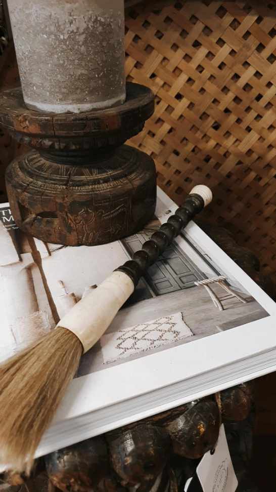 Gi interiøret et kunstnerisk og kulturhistorisk preg med denne vintage kinesiske kalligrafi-kosten. Hver kost er håndlaget med et vakkert, tvinnet håndtak i tre og bust av naturlige materialer, noe som gir den både autentisitet og varme.