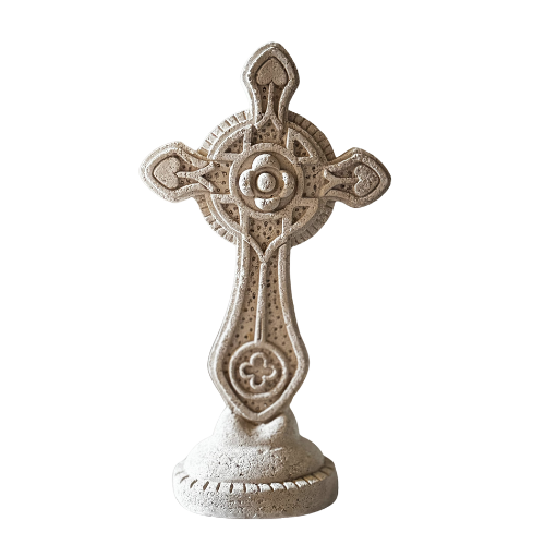 Overflaten er naturlig ujevn og bærer preg av tid, med variasjoner i farge og struktur som gjør hvert kors unikt. Den rustikke, eldet teksturen gir et uttrykk av styrke, tro og utholdenhet – et vakkert symbol med både estetisk og historisk verdi.