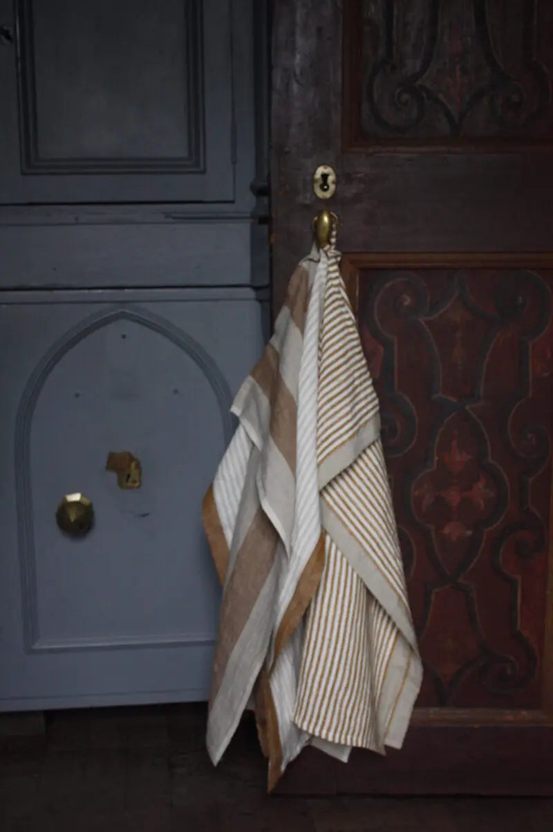 Gi kjøkkenet et rolig og naturlig preg med Lilou kjøkkenhåndkle i lin og beige striper. Håndkleet er laget av 100 % lin, et slitesterkt og hurtigtørkende naturmateriale som blir mykere for hver vask. De brede stripene i beige og naturfarget lin gir et tidløst og rustikt uttrykk som passer perfekt inn i et skandinavisk kjøkken.