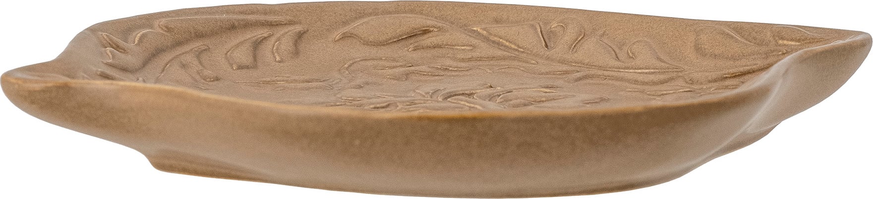 Lizz serveringsfat fra Bloomingville kombinerer funksjonalitet med tidløs skjønnhet. Det er laget av slitesterkt stentøy og har et vakkert relieffmønster med florale detaljer som gir en klassisk og kunstnerisk følelse. Den varme brunfargen tilfører rommet et hint av nostalgi, samtidig som designet føles moderne og elegant.