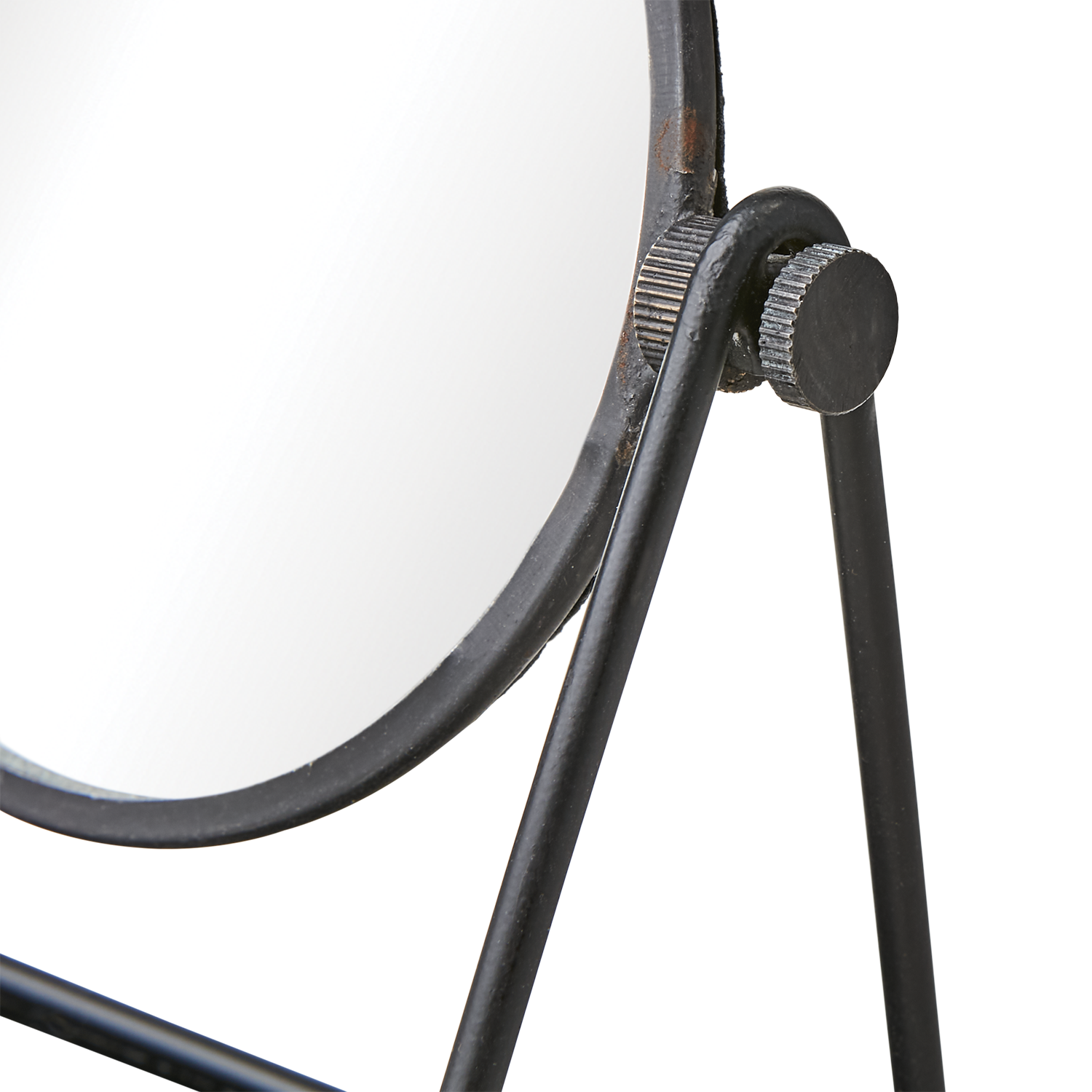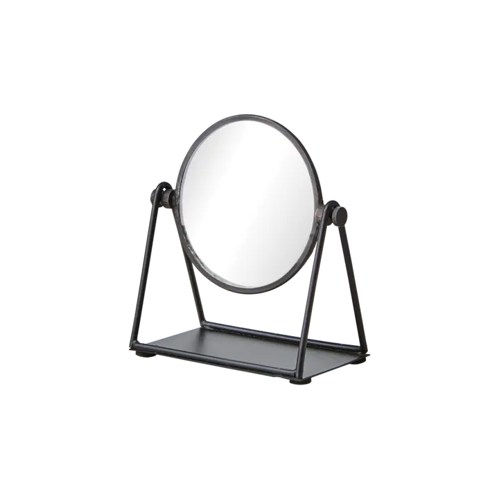 Affari of Sweden Rundt Sminkespeil i svart jern kombinerer funksjonalitet med et tidløst, industrielt uttrykk. Dette kompakte bordspeilet passer perfekt på sminkebordet, baderommet eller som et elegant tilskudd til soverommet. Den runde speilflaten kan enkelt vippes for å finne den ideelle vinkelen, mens den solide rammen i jern sørger for stabilitet og lang levetid.