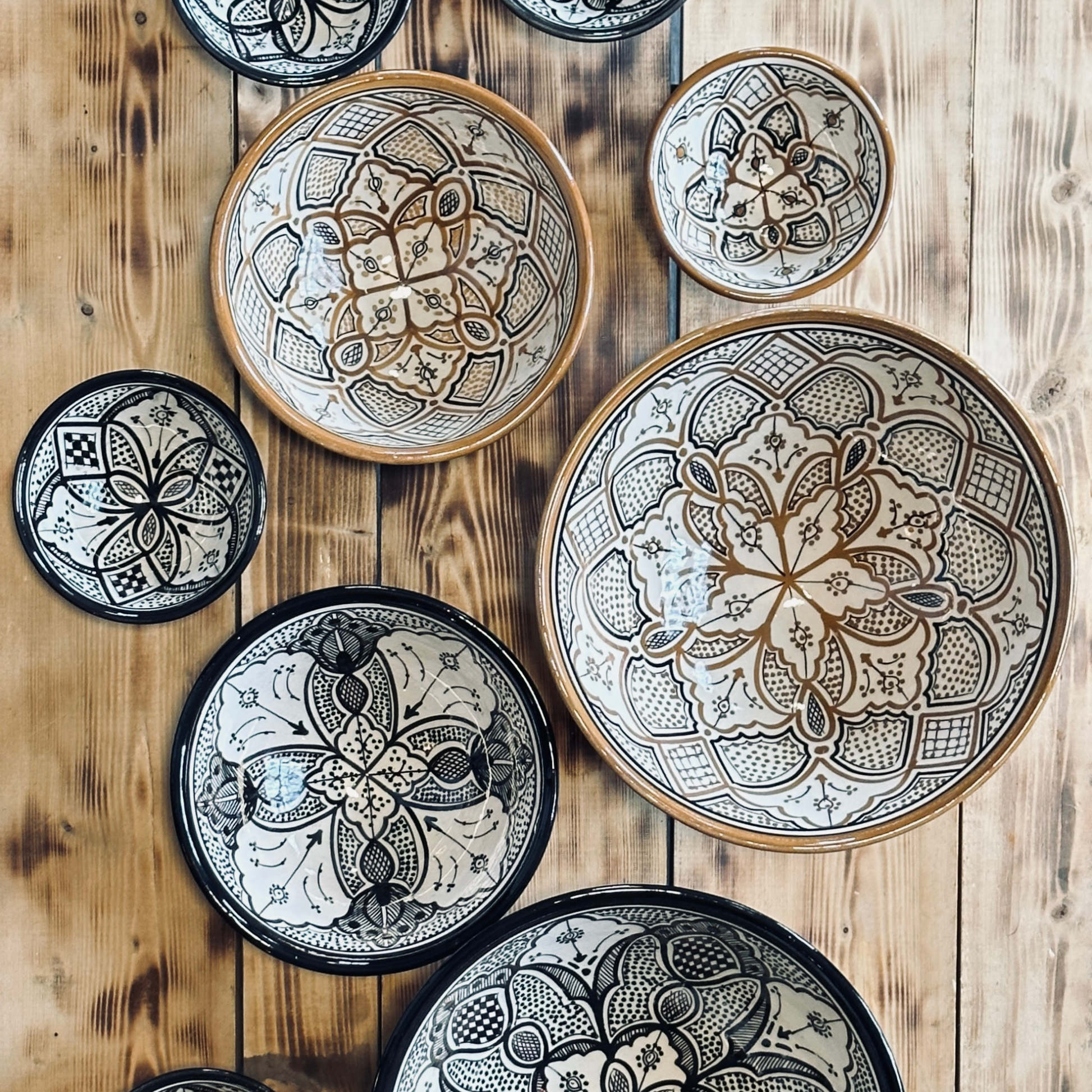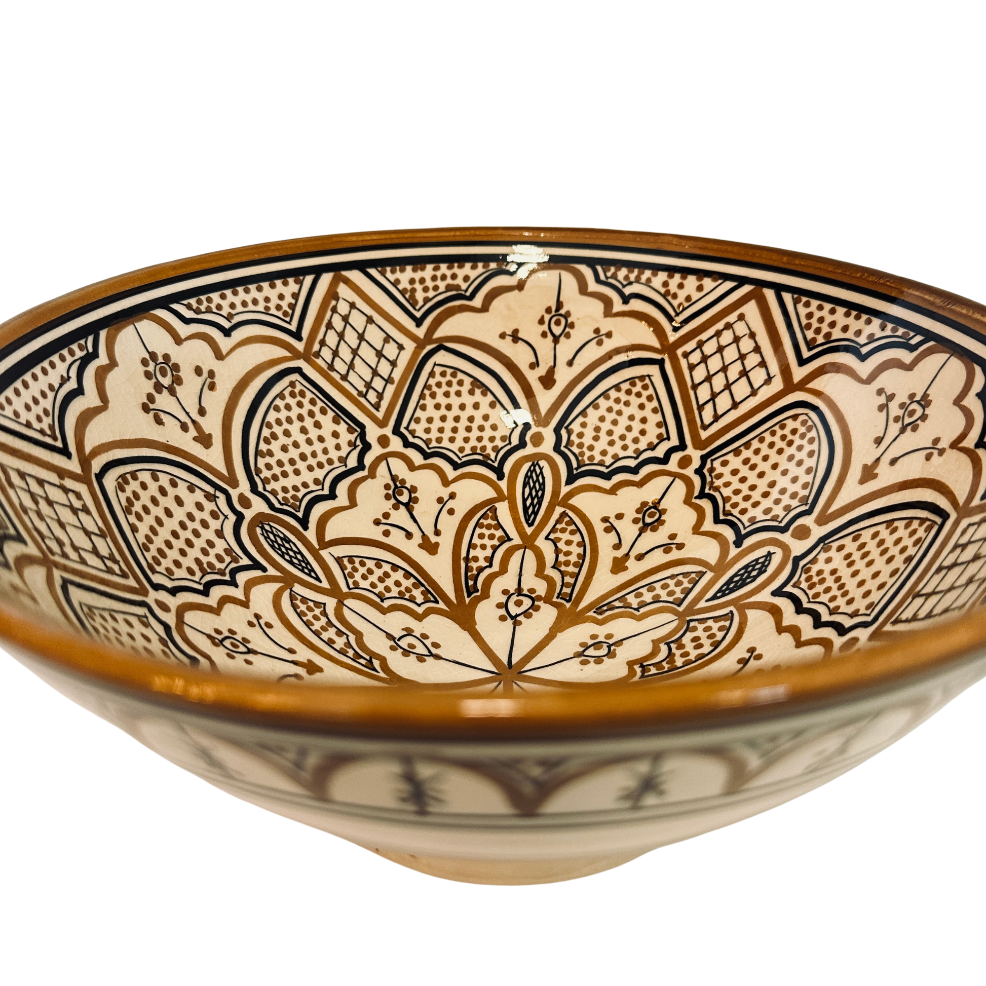 Denne marokkanske keramikkskålen er et ekte mesterverk av håndverk og tradisjon. Hver skål er individuelt håndlaget og håndmalt i Marokko, med detaljerte mønstre inspirert av klassisk berber- og islamsk ornamentikk. Det varme samspillet mellom brun og svart gir skålen en rustikk, tidløs karakter som passer perfekt i både moderne og tradisjonelle hjem.