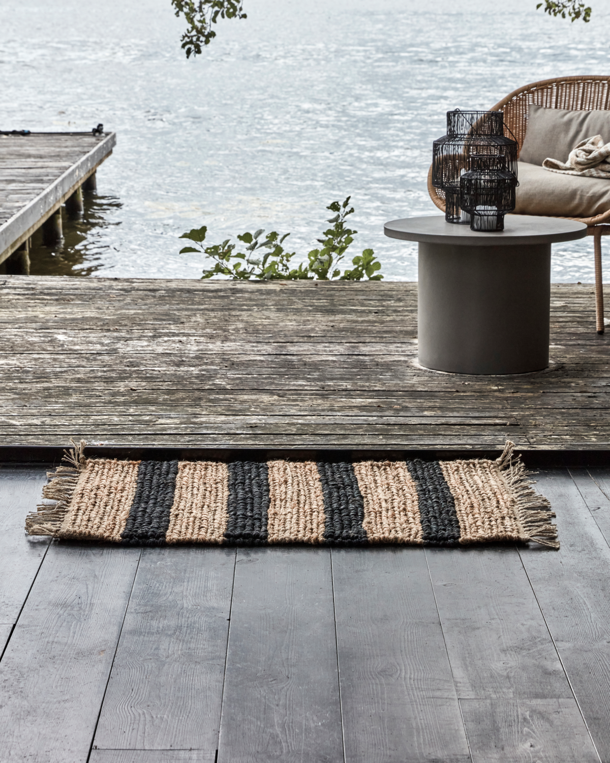 Gi rommet ditt et naturlig løft med Rimi teppe fra House Doctor – et vakkert håndvevd teppe laget av 100 % jute. Den rustikke teksturen og de klassiske stripene i sort skaper en fin kontrast som gir interiøret både dybde og balanse.