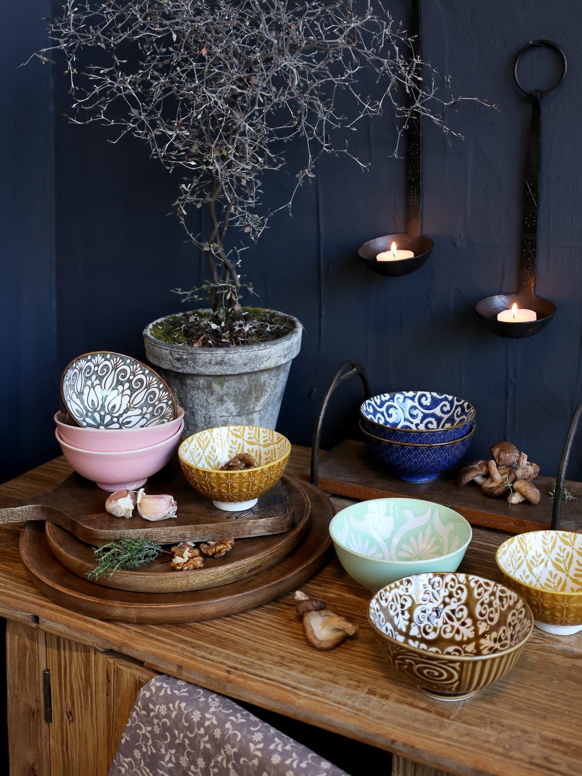 Arés-serien består av flere farger og mønstre som enkelt kan kombineres. Skålene skaper et levende uttrykk på bordet, enten du velger et helhetlig, harmonisk uttrykk eller blander flere design for en mer personlig og bohemsk stil.