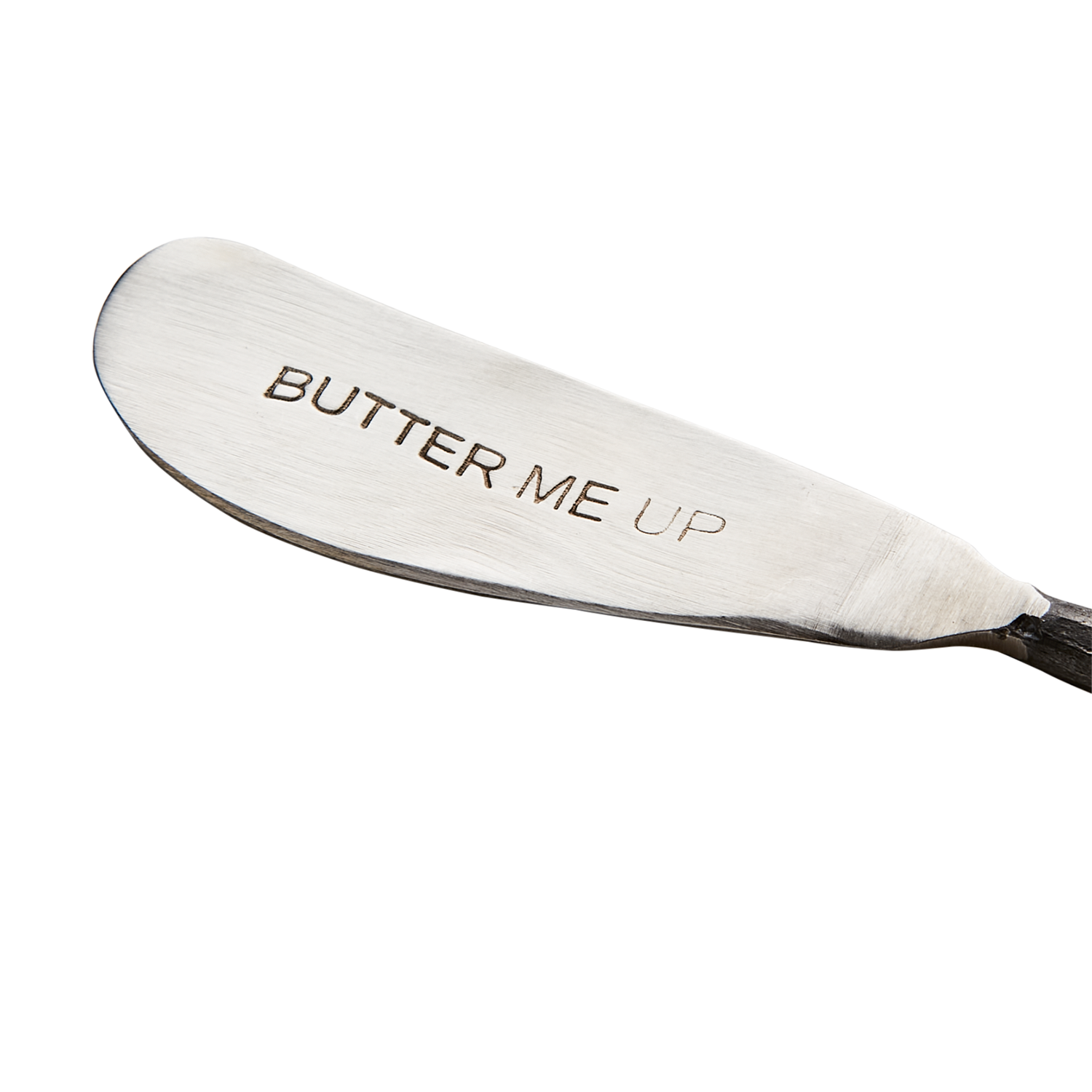 Gjør frokosten litt hyggeligere med våre håndlagde smørkniver med tekst – en perfekt kombinasjon av funksjon og humor. Knivene kommer i fire ulike varianter med tekstene “Spread the love”, “Spred joy”, “Butter me up” og “Take a dip”. Hver kniv selges separat, slik at du kan velge din favoritt eller samle alle fire for et komplett sett.