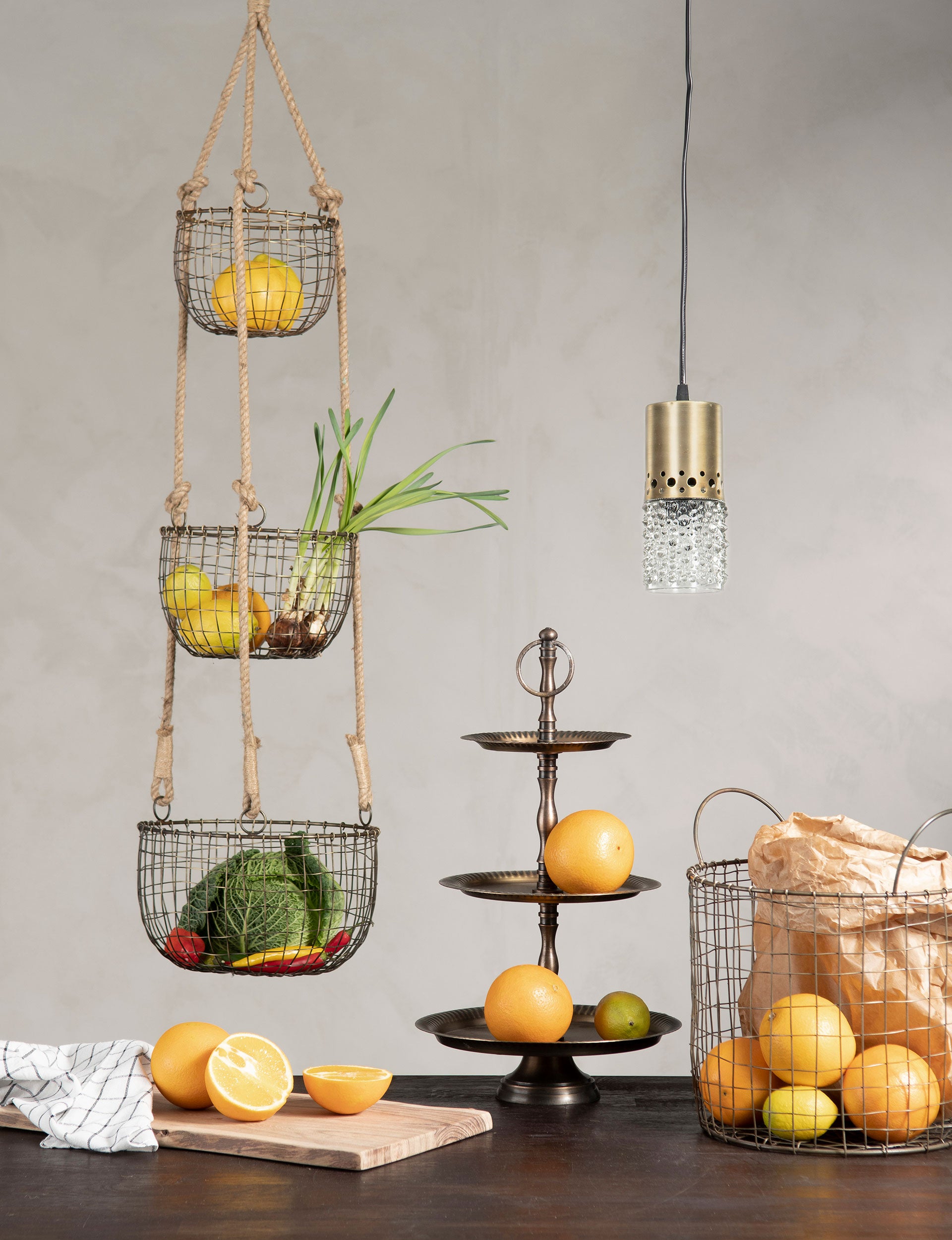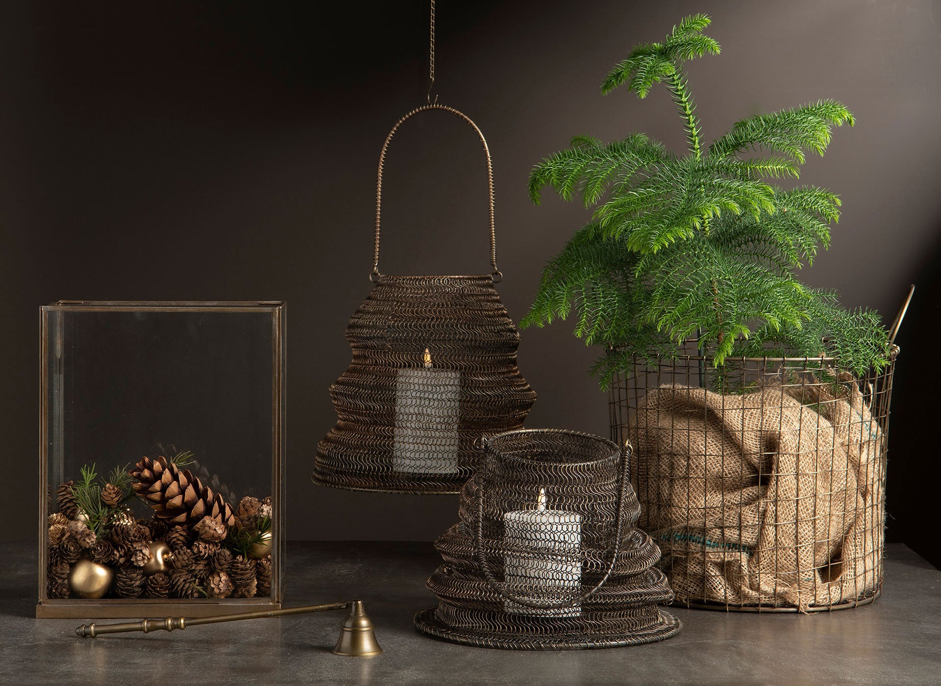 Dekorativ og solid oppbevaringskurv i metall med praktiske håndtak. Kurven har et luftig, flettet uttrykk som gir et rustikt og industrielt preg, samtidig som den passer perfekt inn i både moderne og klassiske interiør.