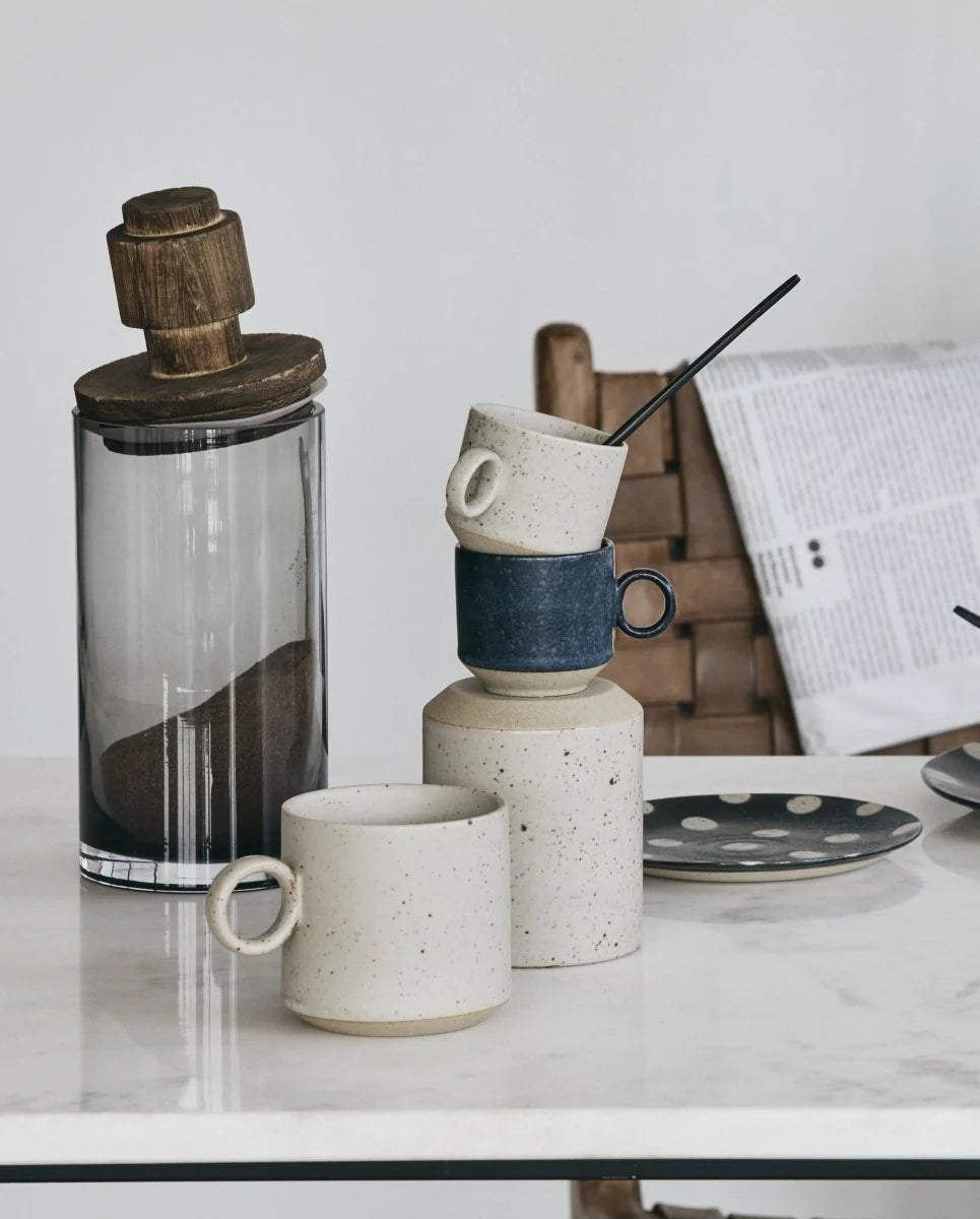 Kombiner funksjon og estetikk med Nordal Salvie oppbevaringsglass med trelokk. Et stilig og praktisk glass som passer perfekt både på kjøkkenet og badet – ideelt for oppbevaring av alt fra ris, pasta og nøtter til bomullspads eller te.