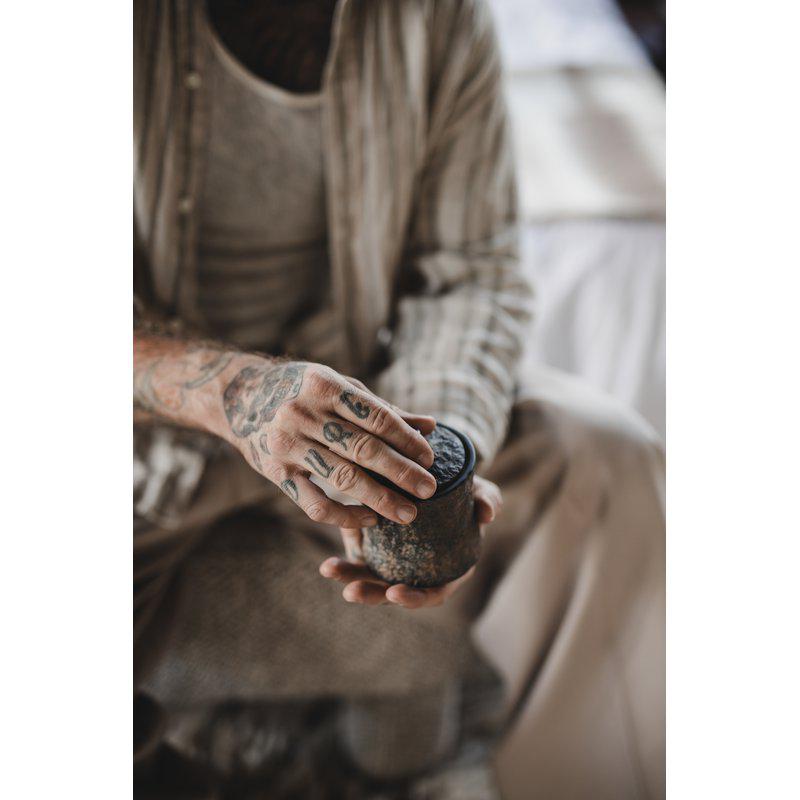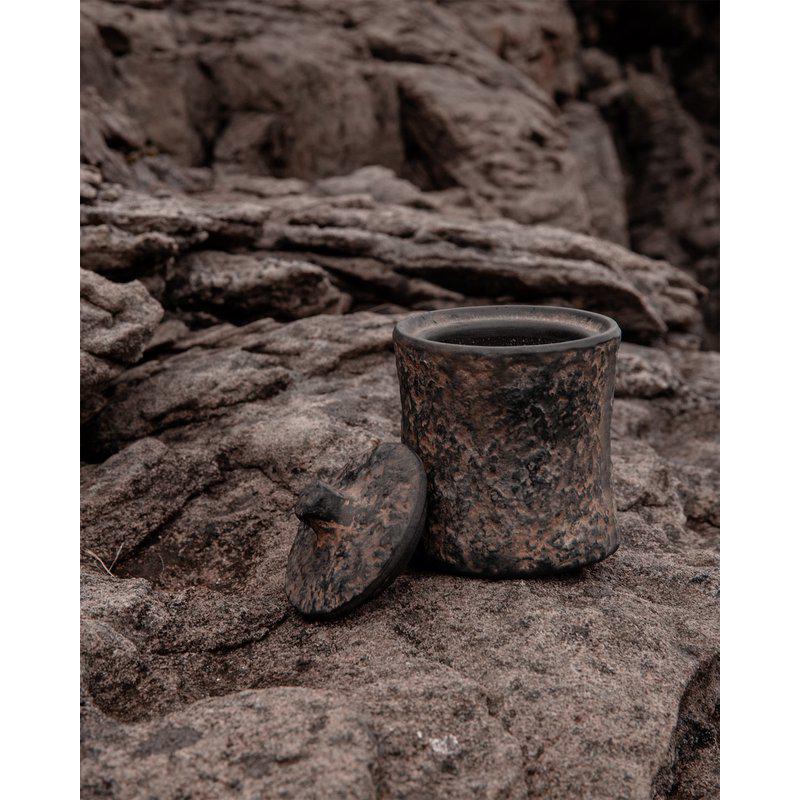 Beholderen i steintøy gir et rustikt og tidløst uttrykk, og fungerer også som et dekorativt element i hjemmet. Når lyset er brent ned, kan beholderen brukes videre til oppbevaring av små gjenstander – en varig detalj med både funksjon og estetisk verdi.