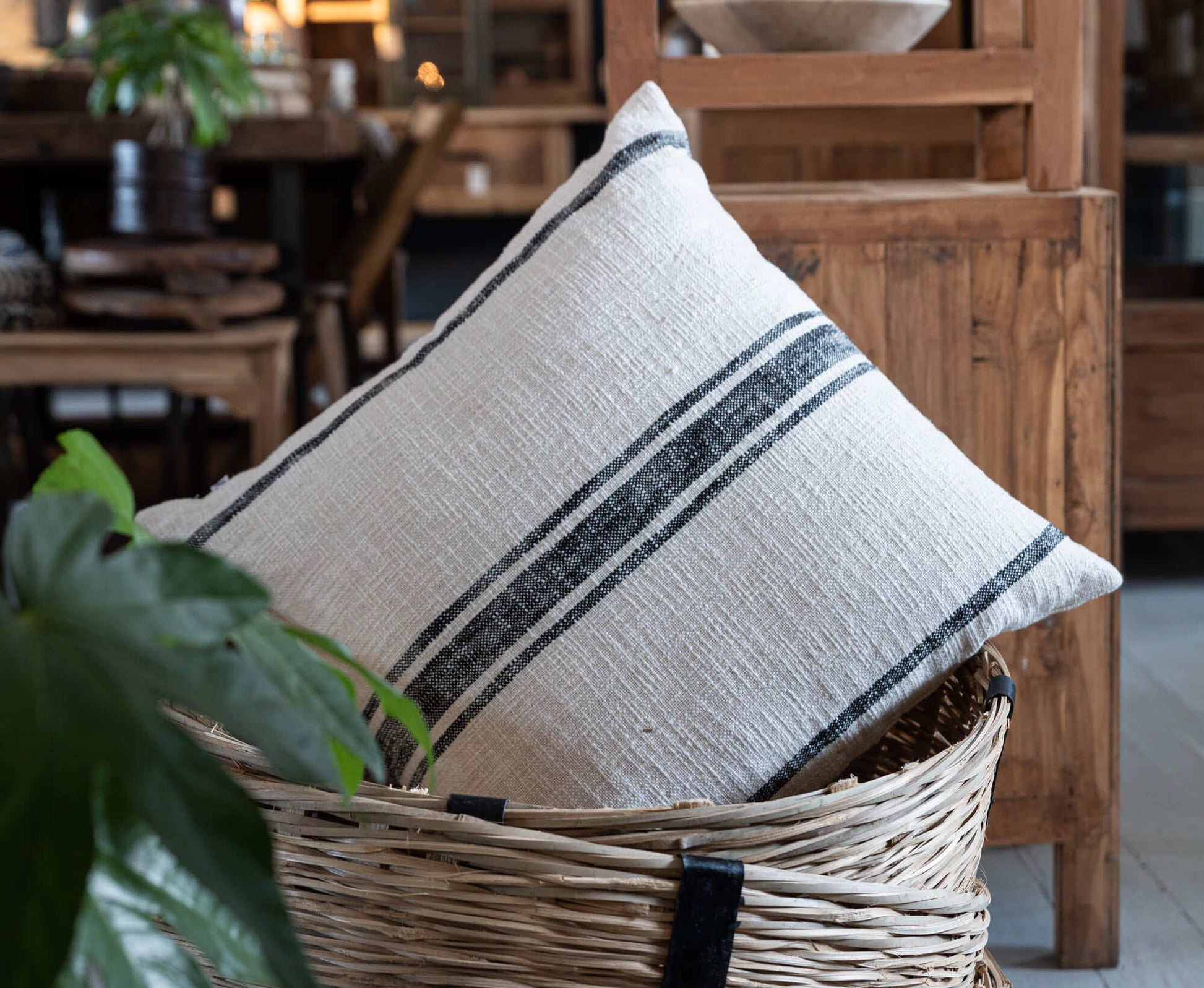 Denne steinvaskede linputen i 50x50 cm er laget av 100 % lin med et mykt bomullsfôr på innsiden — perfekt kombinasjon av komfort og holdbarhet. Den klassiske stripevevingen i svart mot en lun naturfarge gir et rent og nordisk uttrykk som passer like godt i stuen som på soverommet.