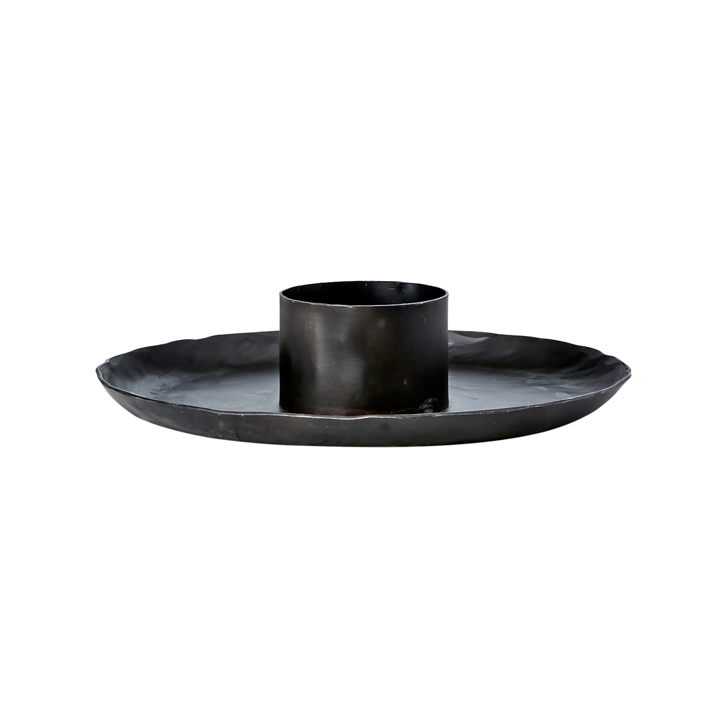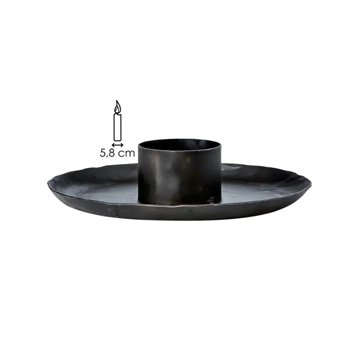 THOR lysstake i svart jern er en lav og solid lysstake med et rått, tidløst uttrykk. Den brede formen gir et stabilt fundament og fungerer samtidig som et beskyttende fat mot stearin, noe som gjør den både praktisk og dekorativ.