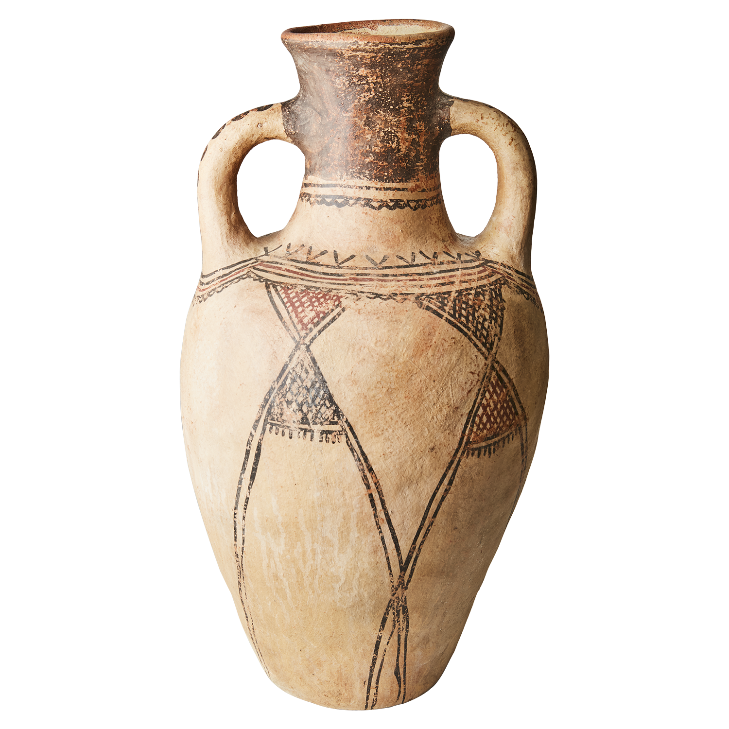 Den rustikke overflaten og håndmalte dekoren gir et autentisk uttrykk som passer både i moderne og tradisjonelle hjem. Plasser den som et blikkfang på gulvet, i en vinduskarm eller som en del av en harmonisk stilleben.