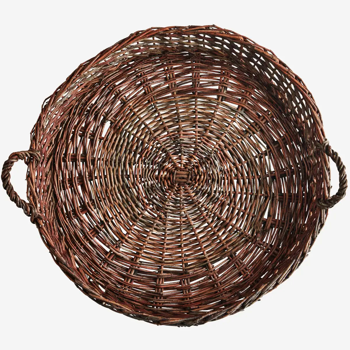 Gi hjemmet ditt et varmt og organisk uttrykk med dette store, håndflettede brettet i pil fra Madam Stoltz. Det runde designet, de solide håndtakene og den rustikke strukturen gjør det både vakkert og praktisk – perfekt til servering, pynt eller som et atmosfærisk blikkfang på bordet. Hvert brett er unikt i form og fargetoner, takket være de naturlige materialene og det håndlagde uttrykket.